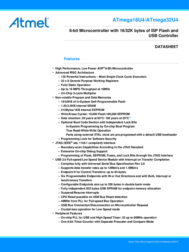 ATmega32U4 ATmega16U4/32U4 - Complete Datasheet