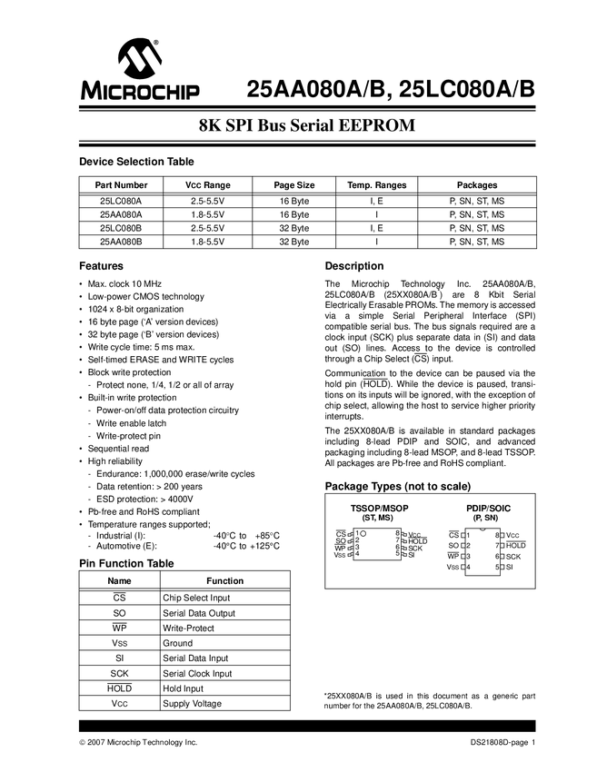25LC080A 25AA080A/B,25LC080A/B Device Data Sheet