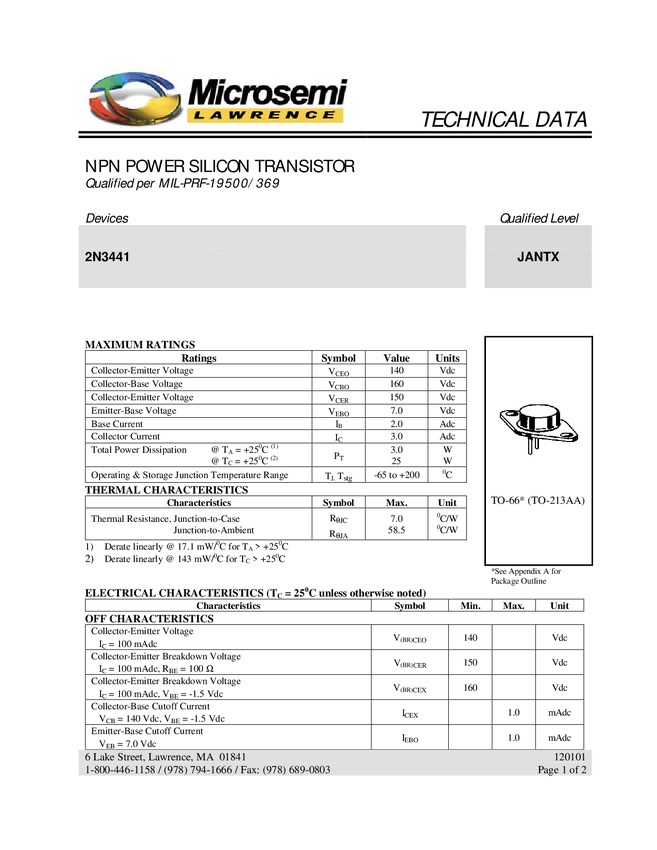 JANTXV2N3441-Transistor, JAN2N3441-Transistor, JANTX2N3441-Transistor