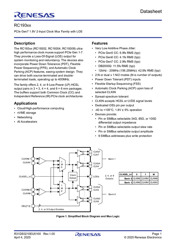 RC19304 PCIe Gen7 2:4 Clock Multiplexer