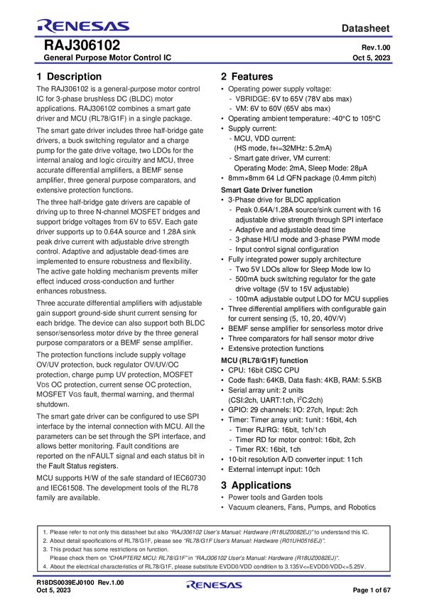 RAJ306102 General-Purpose Motor Control IC