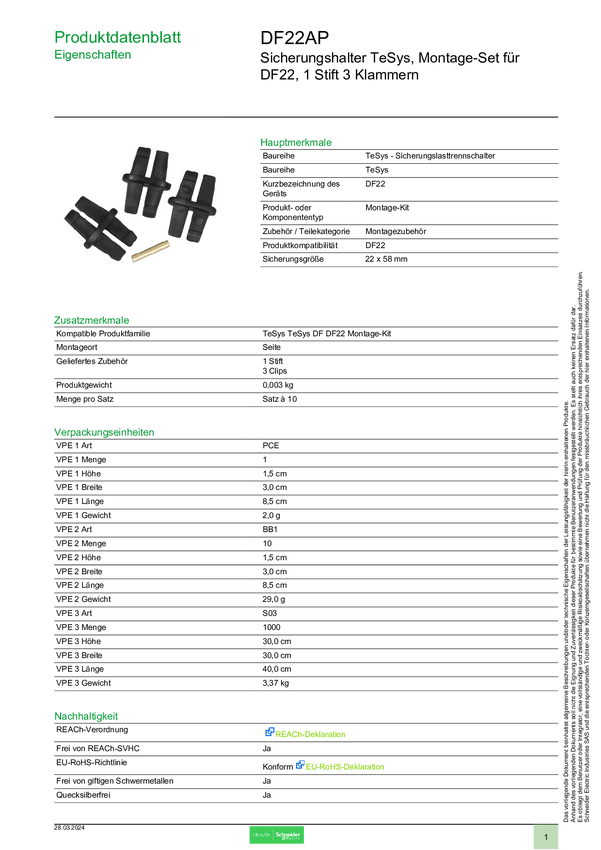 DF22AP Schneider Electric DF22AP Uchwyt bezpiecznika 10 szt.