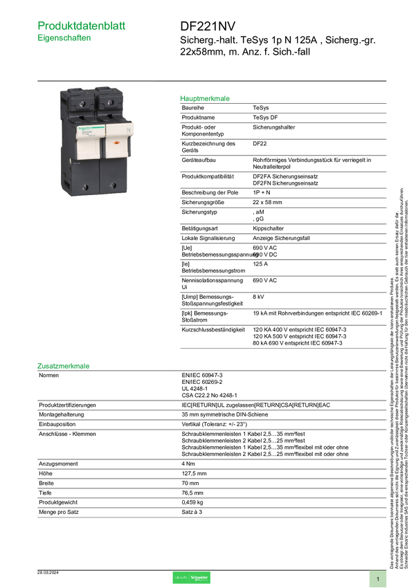 DF221NV Schneider Electric DF221NV Uchwyt bezpiecznika 3 szt.