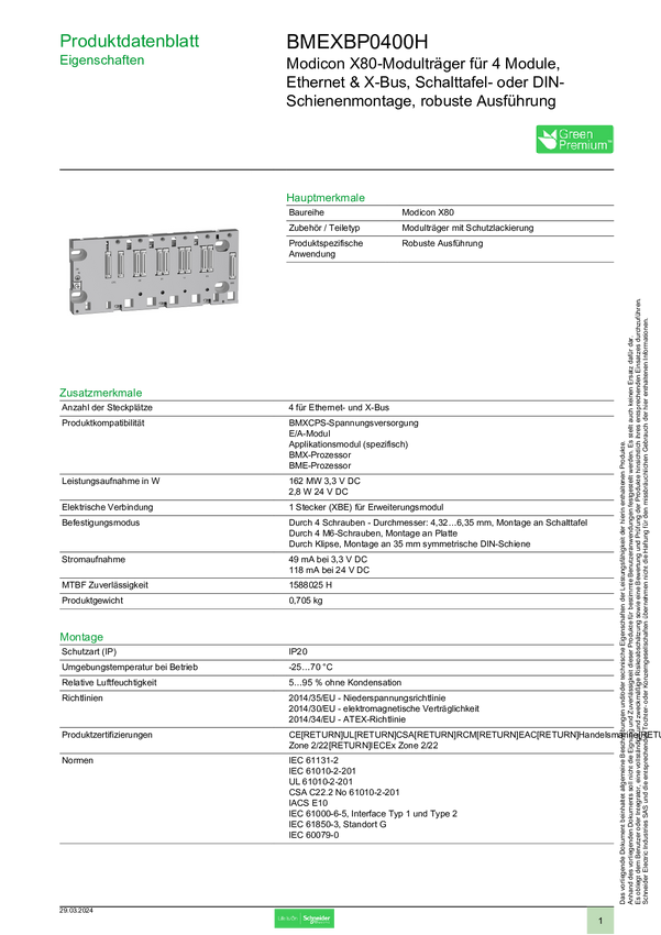 BMEXBP0400H Schneider Electric Rozszerzenie obsługi modułów 1 szt.