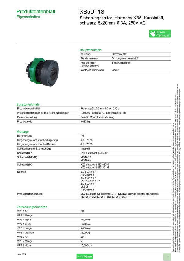 XB5DT1S Schneider Electric XB5DT1S Uchwyt bezpiecznika 1 szt.