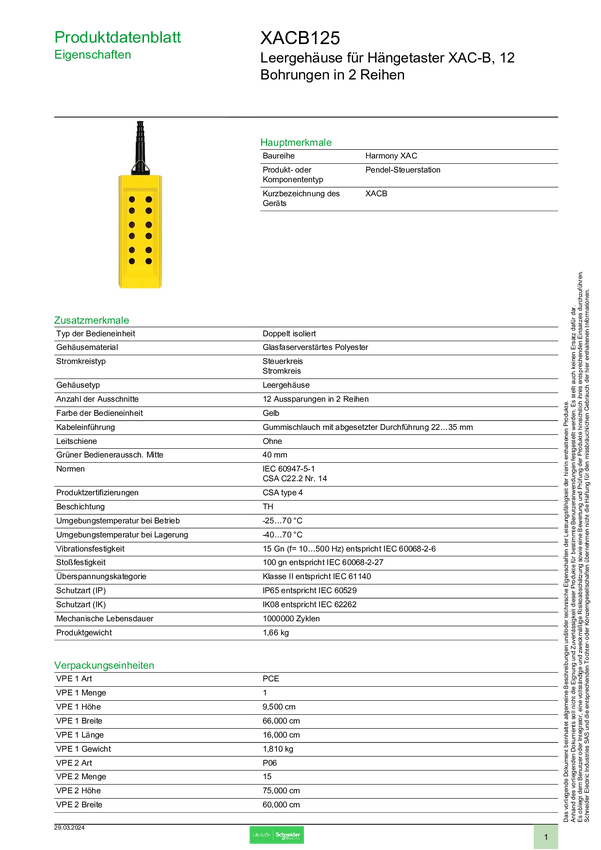 XACB125 Pusta obudowa Schneider Electric XACB125 1 szt.
