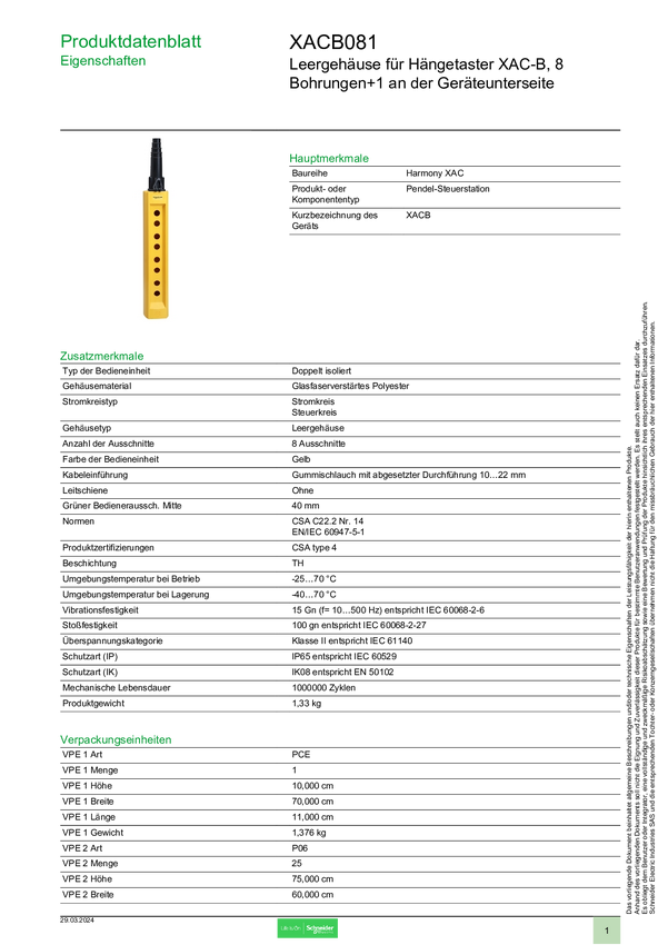 XACB081 Pusta obudowa Schneider Electric XACB081 1 szt.