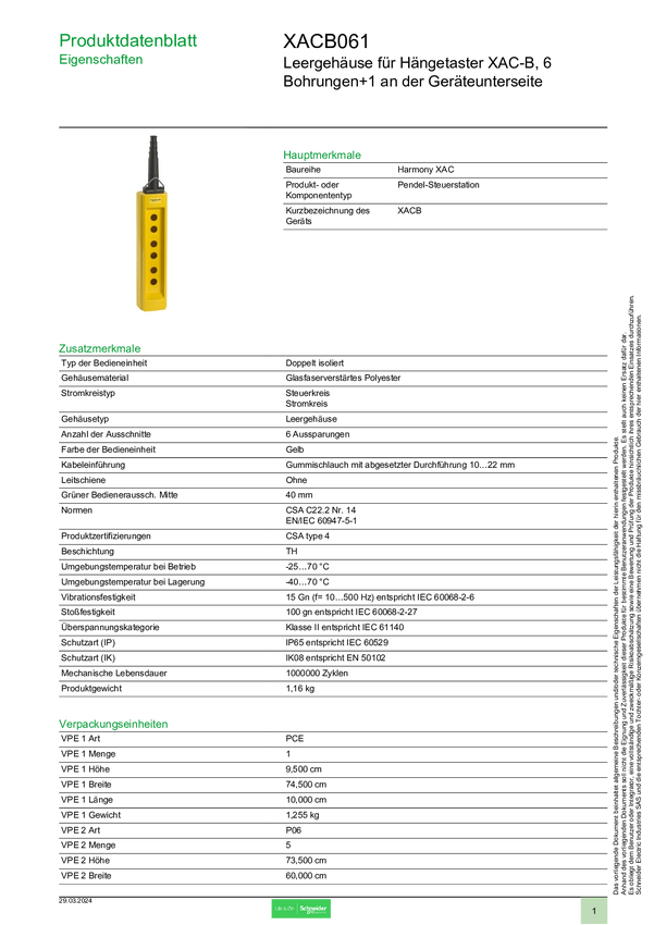 Pusta obudowa Schneider Electric XACB061 1 szt.