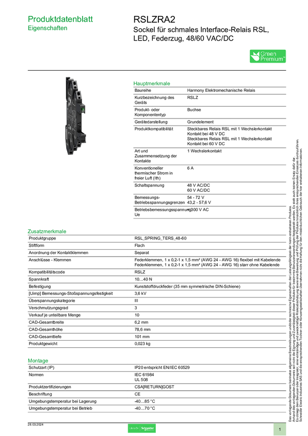 Schneider Electric RSLZRA2 Gniazdo przekaźnika, 10 szt.