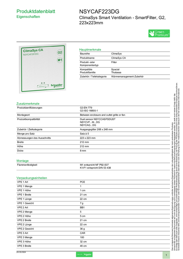 NSYCAF223DG Schneider Electric NSYCAF223DG Wymienna mata filtracyjna 1 szt.