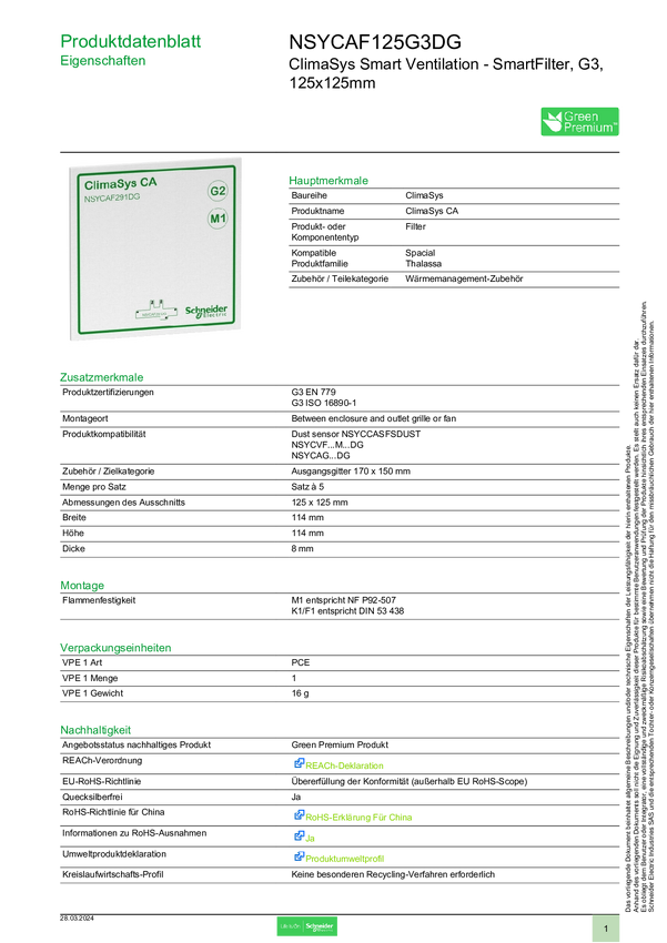 Schneider Electric NSYCAF125G3DG Wymienna mata filtracyjna 1 szt.