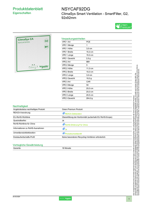 NSYCAF92DG Schneider Electric NSYCAF92DG Wymienna mata filtracyjna 1 szt.