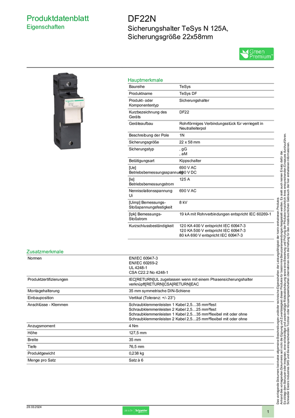 DF22N Schneider Electric DF22N Uchwyt bezpiecznika 6 szt.