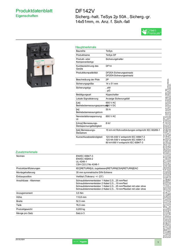 DF142V Schneider Electric DF142V Uchwyt bezpiecznika 3 szt.