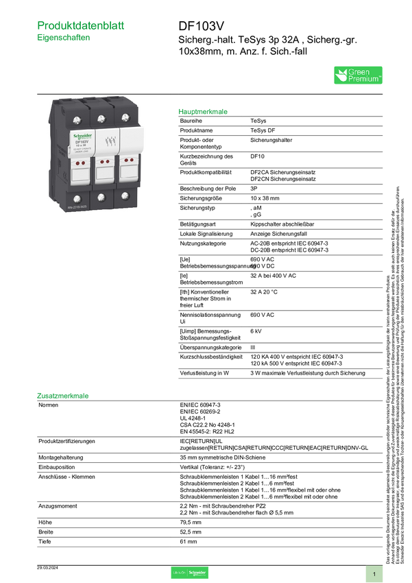 Schneider Electric DF103V Uchwyt bezpiecznika 4 szt.