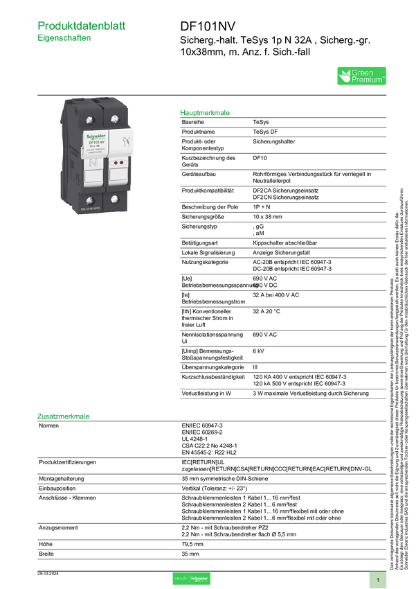 DF101NV Schneider Electric DF101NV Uchwyt bezpiecznika 6 szt.
