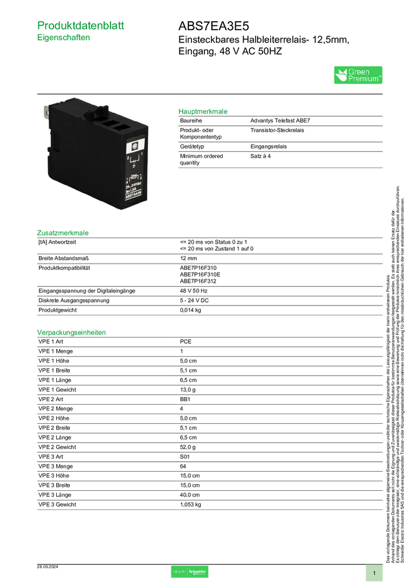 ABS7EA3E5 Przekaźnik THT Schneider Electric ABS7EA3E5 4 szt.