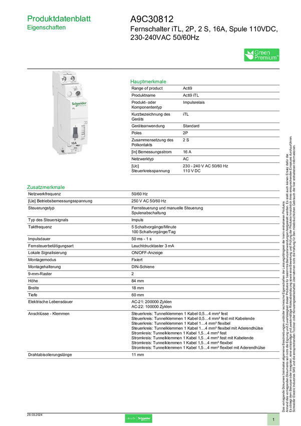 A9C30812 Przełącznik zdalny Schneider Electric Acti 9 1 szt.