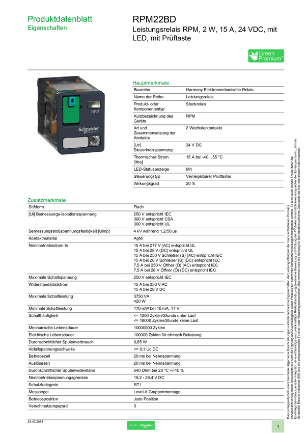 RPM22BD Schneider Electric RPM22BD Przekaźnik o wysokiej wydajności