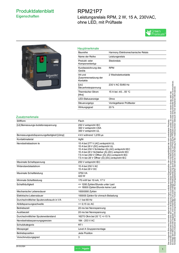 RPM21P7 Przekaźnik o wysokiej wydajności Schneider Electric RPM21P7 10 szt.