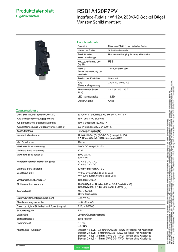 RSB1A120P7PV Schneider Electric RSB1A120P7PV Przekaźnik interfejsowy