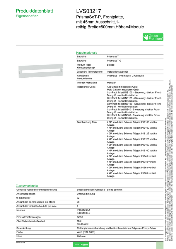 LVS03217 Panel przedni Schneider Electric LVS03217 1 szt.