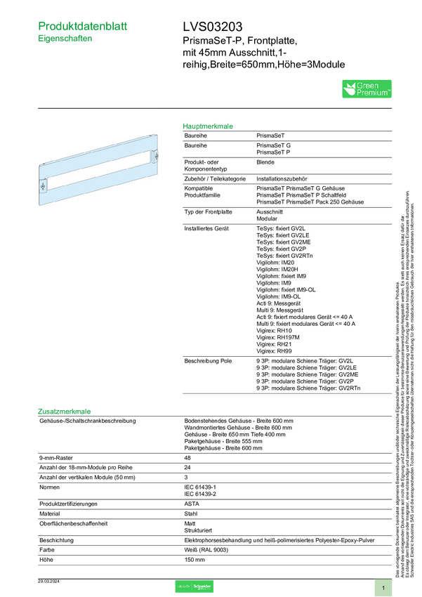 LVS03203 Panel przedni Schneider Electric LVS03203 1 szt.