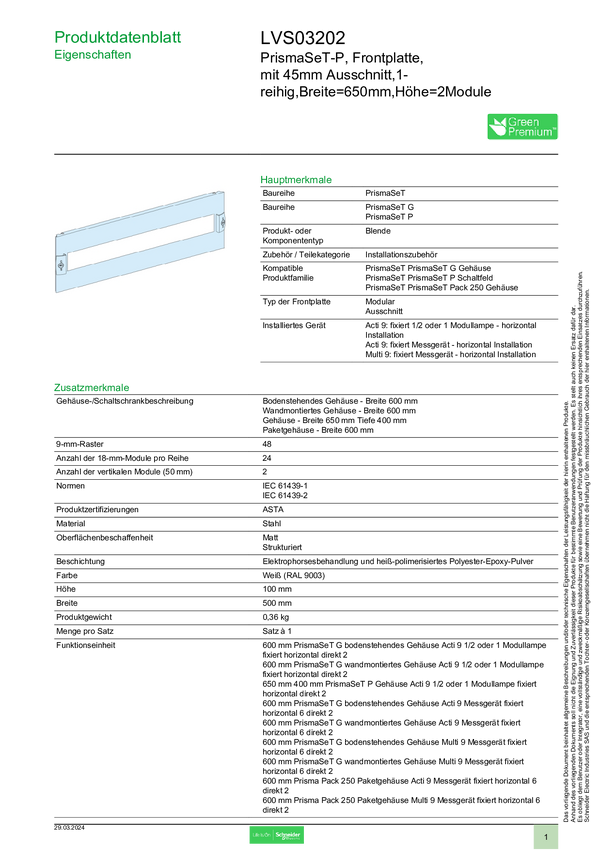 LVS03202 Panel przedni Schneider Electric LVS03202 1 szt.
