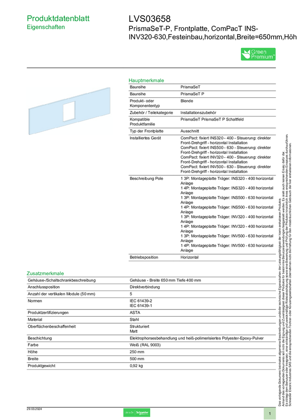 LVS03658 Panel przedni Schneider Electric LVS03658 1 szt.