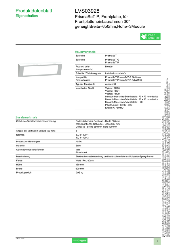 LVS03928 Panel przedni Schneider Electric LVS03928 1 szt.