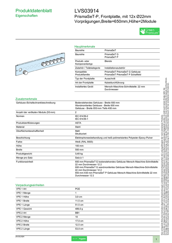 LVS03914 Panel przedni Schneider Electric LVS03914 1 szt.