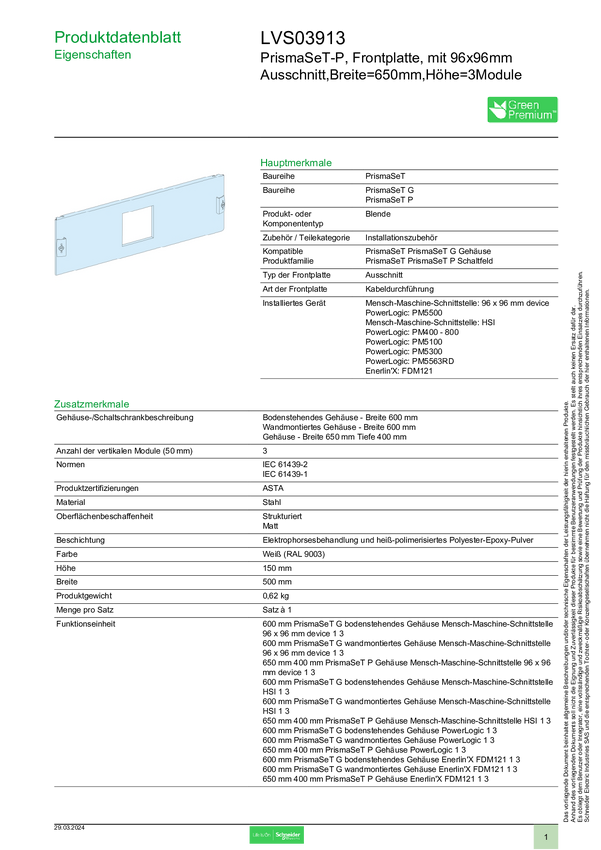 LVS03913 Panel przedni Schneider Electric LVS03913 1 szt.