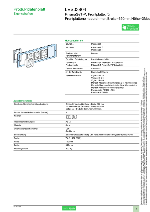 LVS03904 Panel przedni Schneider Electric LVS03904 1 szt.