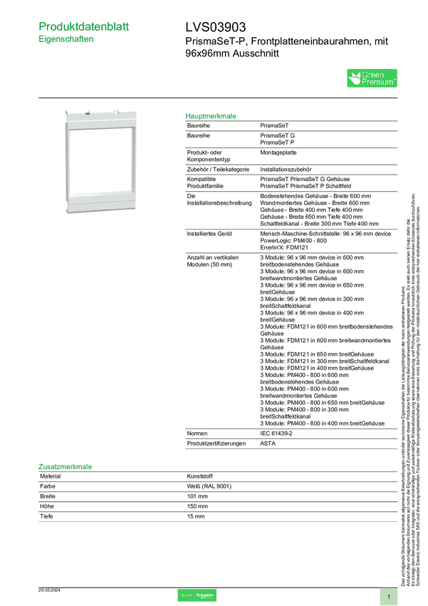 LVS03903 Panel przedni Schneider Electric LVS03903 1 szt.