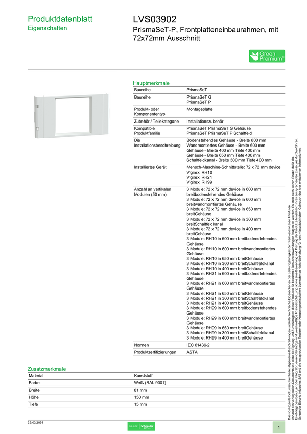 LVS03902 Panel przedni Schneider Electric LVS03902 1 szt.