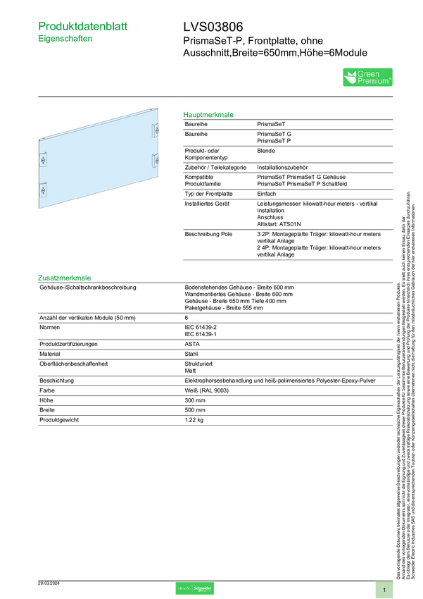 LVS03806 Panel przedni Schneider Electric LVS03806 1 szt.
