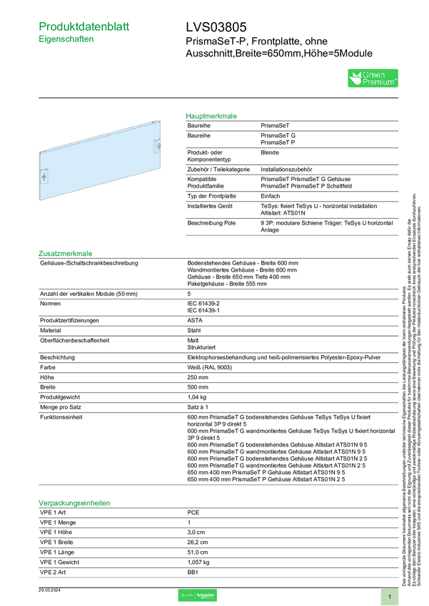 LVS03805 Panel przedni Schneider Electric LVS03805 1 szt.
