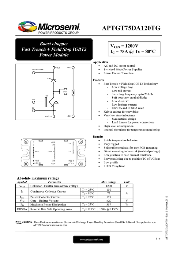 APTGT75DA120TG 1200V-BoostChopper-IGBTModules
