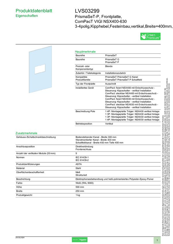 LVS03299 Panel przedni Schneider Electric LVS03299 1 szt.