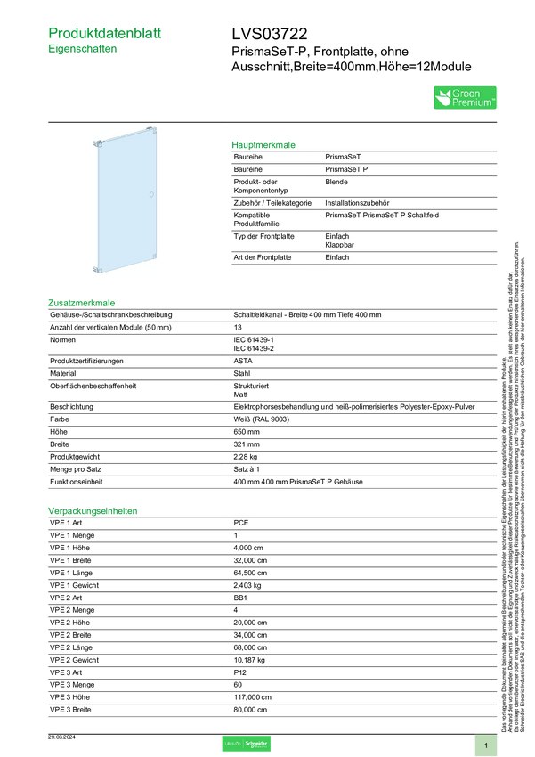 LVS03722 Panel przedni Schneider Electric LVS03722 1 szt.