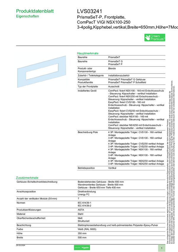 LVS03241 Panel przedni Schneider Electric LVS03241 1 szt.