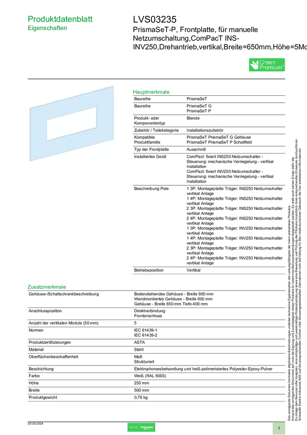 LVS03235 Panel przedni Schneider Electric LVS03235 1 szt.