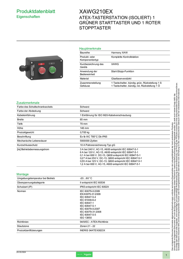Schneider Electric XAWG210EX Przełącznik przyciskowy, 1 szt.