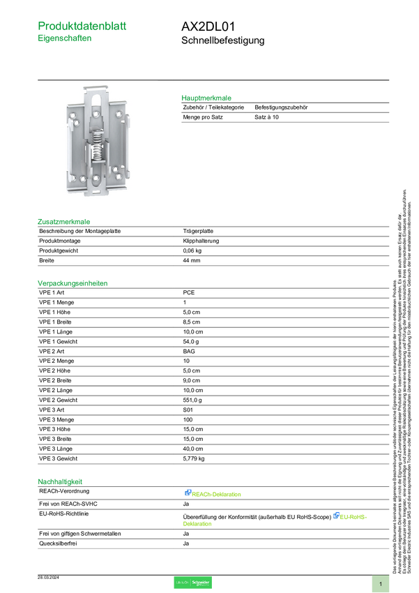 Schneider Electric AX2DL01 Akcesorium do wyłącznika mocy 10 szt.