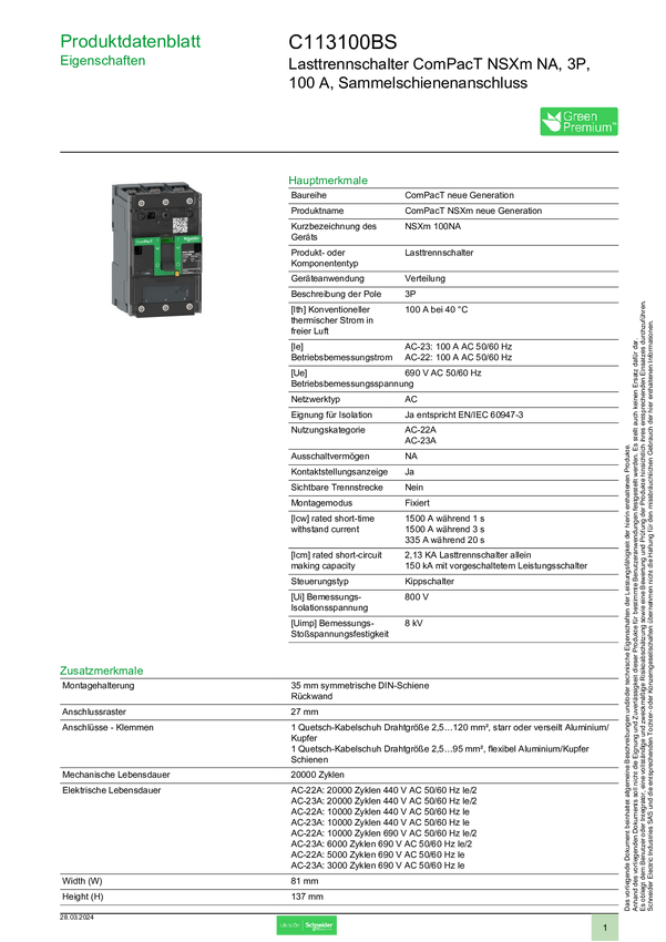C113100BS Schneider Electric C113100BS Rozłącznik 1 szt.