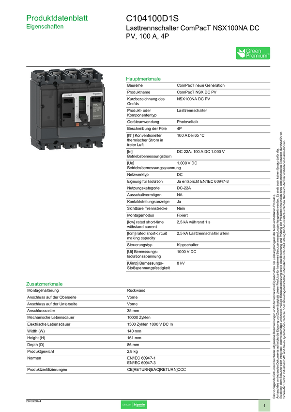 Schneider Electric C104100D1S Rozłącznik 1 szt.