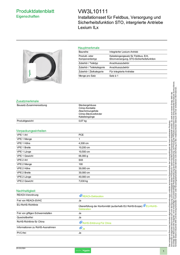 Schneider Electric VW3L10111 Akcesorium do wyłącznika mocy 1 szt.