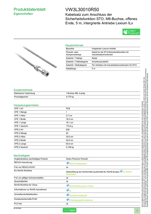 VW3L30010R50 Schneider Electric VW3L30010R50 Kabel przyłączeniowy 1 szt.
