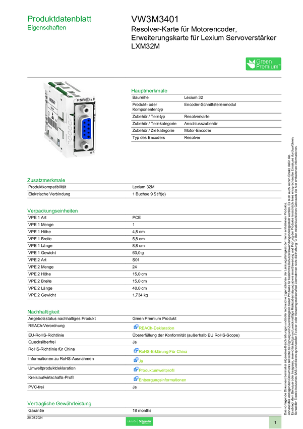 VW3M3401 Schneider Electric VW3M3401 VW3M3401 Akcesorium do wyłącznika mocy 1 szt.