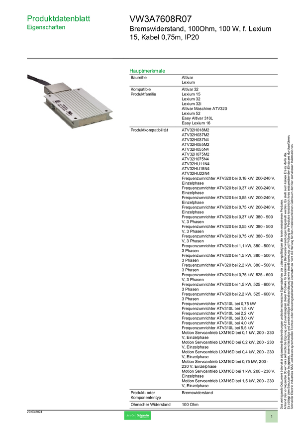 VW3A7608R07 Schneider Electric VW3A7608R07 Rezystor hamujący 1 szt.
